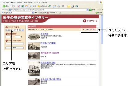 [2]該当エリアの収蔵写真リストを一覧表示します。